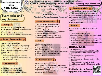 School of Commerce organizes Inter Collegiate Competition on Comm- Unique 2.0 on the theme Mastering Money, Managing Tomorrow Date : 04.03.2026 Venue : Sri Roop ...