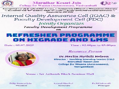 Internal Quality Assurance Cell and Faculty Development Cell Organizes Faculty Development Programme "Refresher Programme on Higrade and LMS" - 05.07.2025
