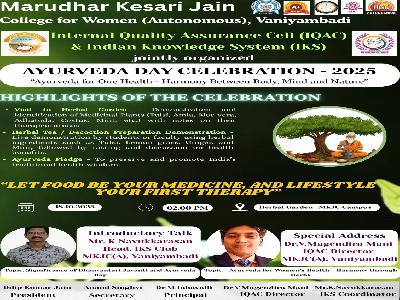 IQAC & IKS Internal Quality Assurance Cell (IQAC) & Indian Knowlege System (IKS) Jointly organized "Ayurveda Day Celebration -2025"