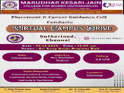 Placement and Career Guidance Cell - Virtual Campus Drive on Sutherland, Chennai 05.12.2025
