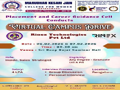 Placement and Career Guidance Cell Organizes Virtual Campus Recruitment Drive with Rinex Technologies Pvt. Ltd. - 06.02.2026 and 07.02.2026. venue: ...