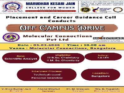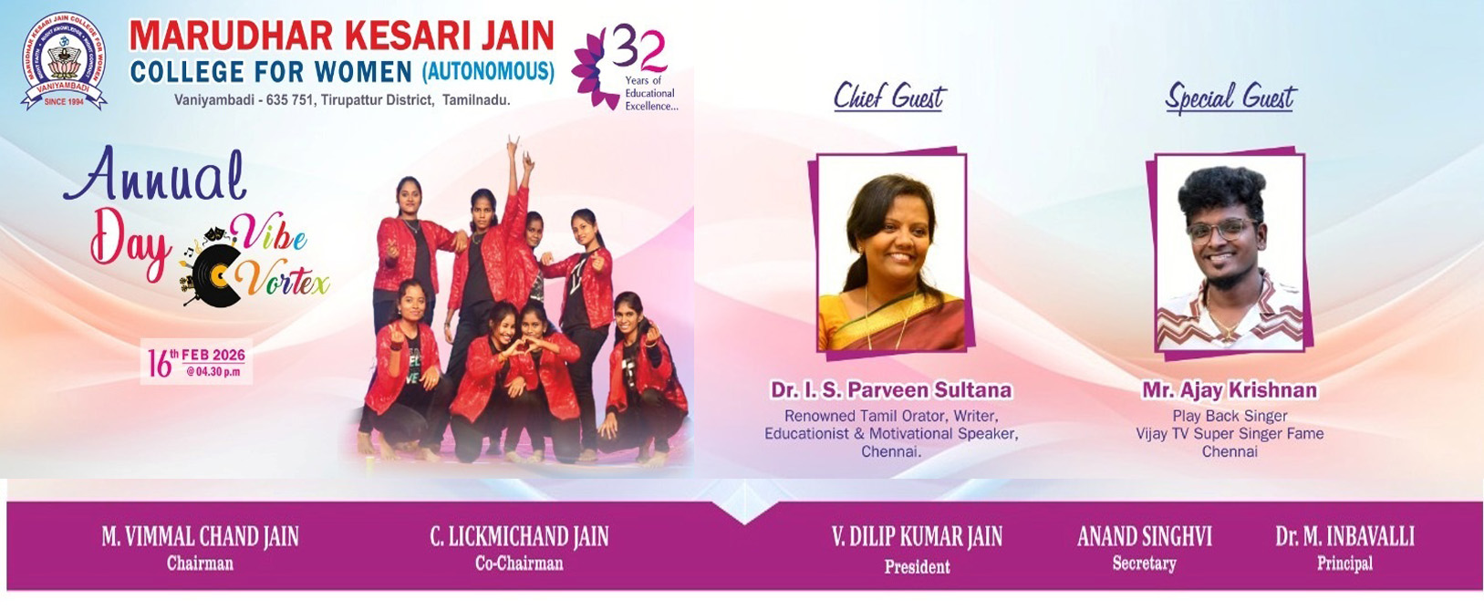 Marudhar Kesari Jain College for Women strives to empower the students,especially those from inclusive society with RIGHT KNOWLEDGE and make them self-sufficient to develop holistic personality and Excellence in their
