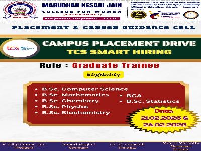 Placement & Career Guidance Cell Organizes Campus Placement Drive TCS Smart Hiring on 21.02.2026 to 24.02.2026 Role: Graduate Trainee