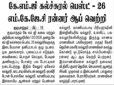 School of Computing Sciences and Computing Vissionaries Association Organizes COMTECH'26 on 23.02.2026 Venue: MKJC Premises Time: 9.30 am