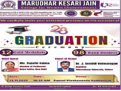 Marudhar Kesari Jain College for Women strives to empower the students,especially those from inclusive society with RIGHT KNOWLEDGE and make them self-sufficient to develop holistic personality and Excellence in their